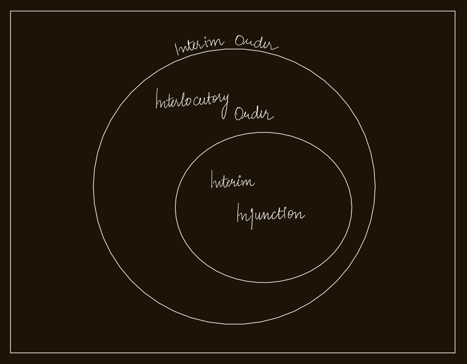 The second type of Interim Order is Interlocutory orders. They are any Interim Order that falls outside of the scope of an Injunction. Interim order has a very large scope as any and every interim order that’s not a preventive relief can be an interlocutory order.